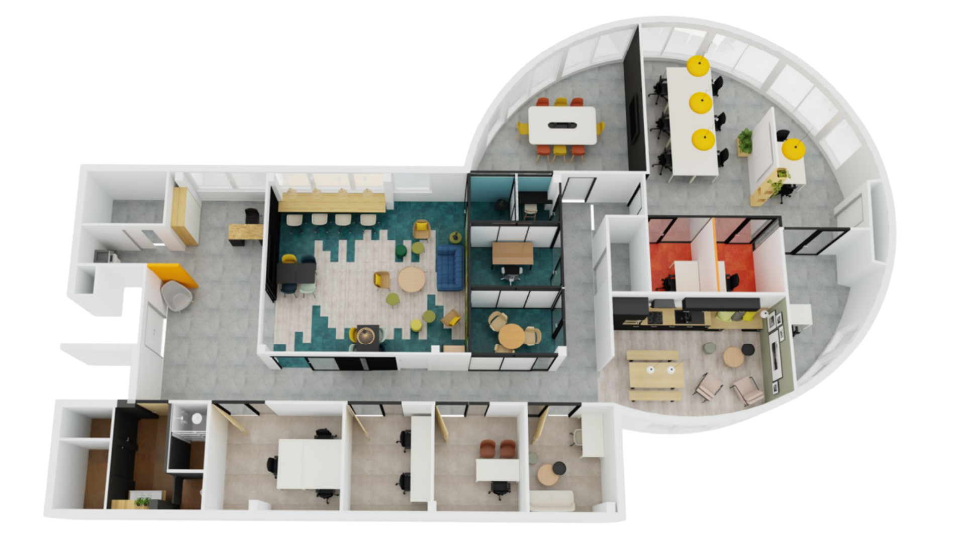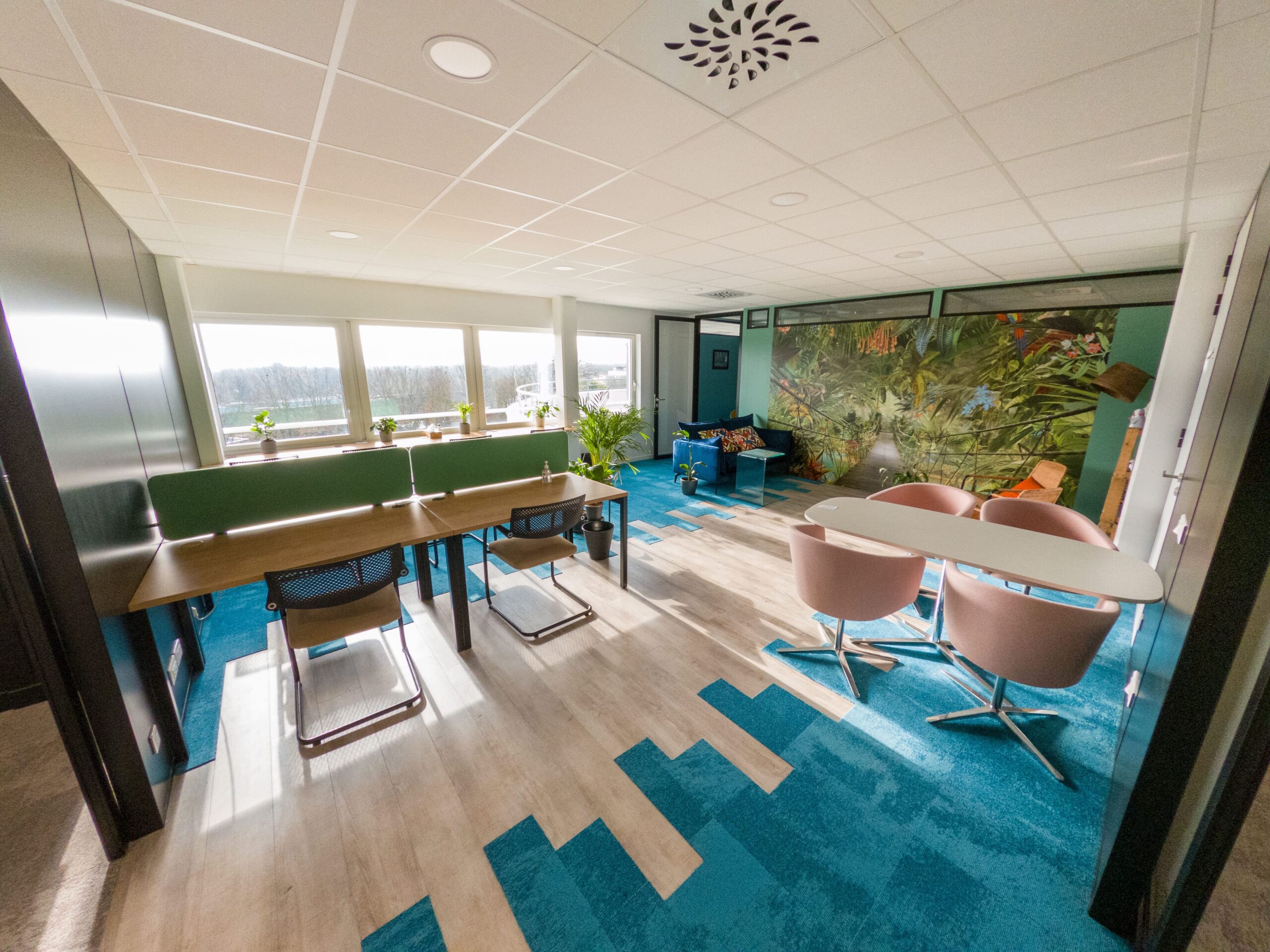 Avec une vue sur la rivière de l’étang Hervé, le parc de verdure de la Fleuriaye et le centre-ville de Carquefou, le WIT est niché au 3ème étage d’un ensemble de bureau.