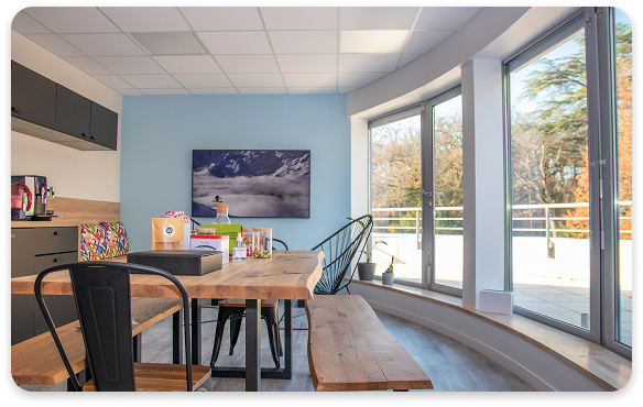 Il est aussi possible de s’installer le temps d’un appel dans la cuisine, une salle de rendez-vous ou la salle de réunion.